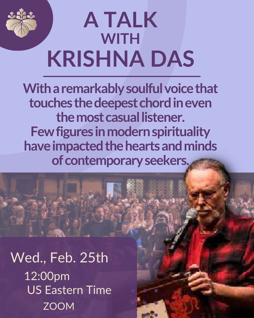 Few figures in modern spirituality, particularly in the West, have impacted the hearts and minds of contemporary seekers as Krishna Das has. A devotee of the North Indian Saint, Neem Karoli Baba (Maharajji), Krishna Das has played an enormous role in popularizing the traditional practice of kirtan in the West, taking the call-and-response chanting out of yoga centers and temples and into concert halls, becoming a worldwide icon and the best-selling western chant artist of all time.