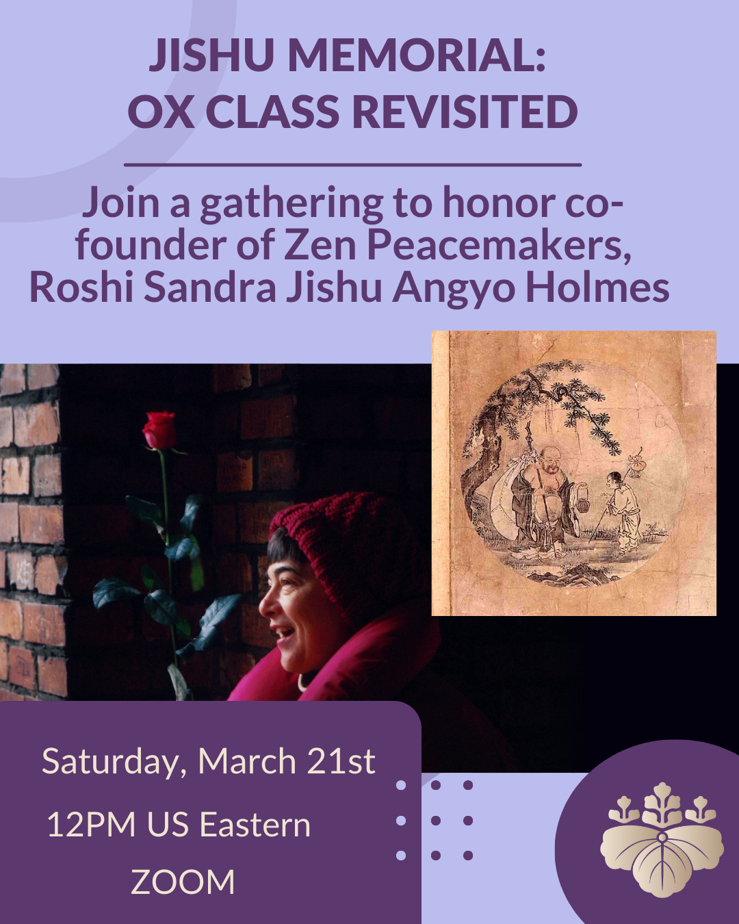 March 20th is the anniversary of the passing of Roshi Sandra Jishu Angyo Holmes (1941-1998), the co-founder of the Zen Peacemaker Order and Zen priest of the White Plum Asanga. Her contribution to the Zen Peacemaker vision still reverberates today as we honor her life and service.